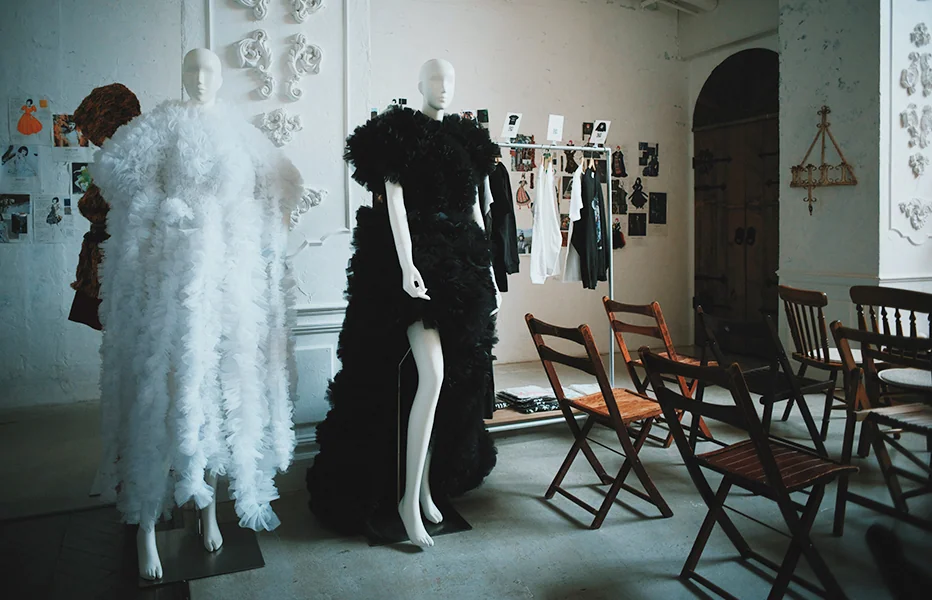 In this space, where original design drawings and witchcraft works are displayed,