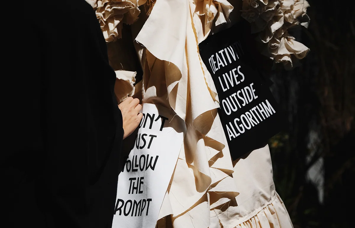 [RESPECT THE FLAWS HONOR THE SWEAT]と[CREATIVITY LIVES OUTSIDE ALGORITHM]
